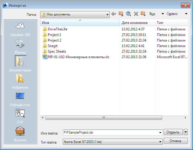 Чтобы импортировать данные из другой программы, выберите соответствующую пользовательскую настройку. (Однако пользовательские настройки недоступны, если выполняется импорт в вид области или в пользовательский вид.)
