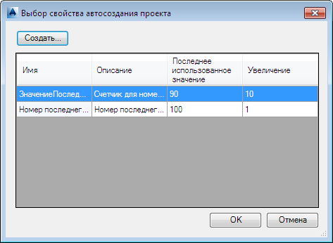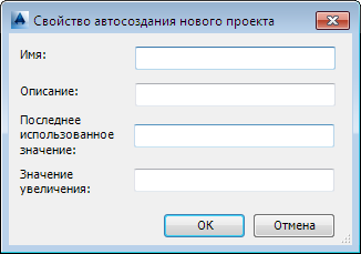 В диалоговом окне "Свойство автосоздания нового проекта" выполните следующие действия.