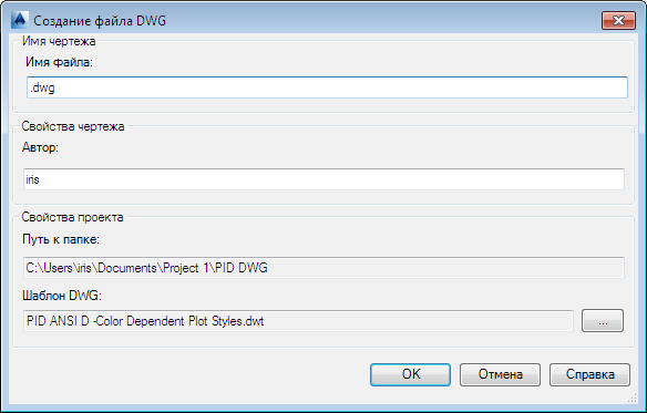 В диалоговом окне "Создание файла DWG" выполните следующие действия.