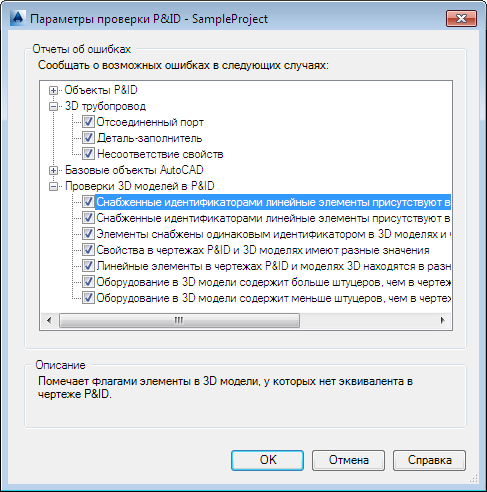 Существует два типа проверки: один только для модели, а другой для модели с учетом связанного чертежа P&ID.