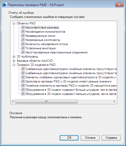 Для каждого проекта задаются типы ошибок, которые помечаются при проверке. После выполнения проверки выявленные ошибки можно исправить или пропустить.