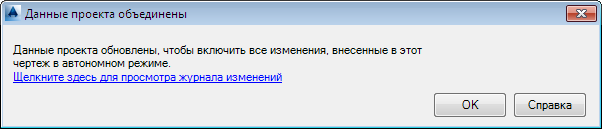 Это диалоговое окно отображается при открытии чертежа, который был изменен вне проекта. Оно также отображается при восстановлении чертежа или резервной копии чертежа.