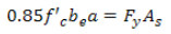If the location of the P.N.A. is confirmed to be within the concrete slab, then the nominal moment capacity of the composite section can be found by adding the moment contributions from the concrete compressive stress block and the steel area under tension. Thus:
