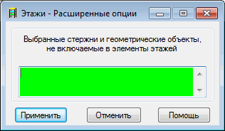 Данное окно позволяет выбрать элементы конструкции (стержни или геометрические объекты), которые будут игнорироваться при определении этажей.