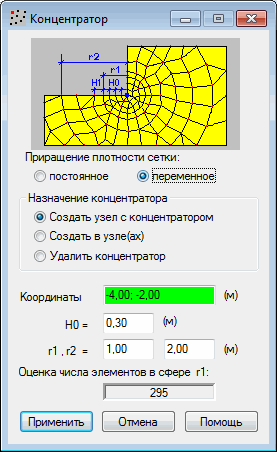 Концентраторы - это определяемые пользователем узлы, в окрестности которых должна быть сгущена сетка конечных элементов. Получить доступ к этому параметру можно следующим образом: