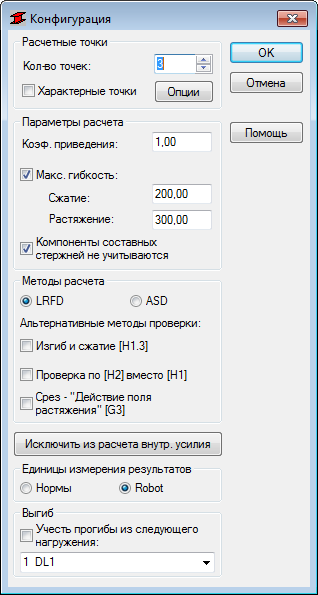 - Кроме того, здесь можно выбрать единицы измерения для результатов расчета элемента. Результаты могут быть представлены в единицах измерения, используемых в указанных стальных нормах, или в единицах измерения, используемых в программе Robot.