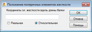 - Введите координаты поперечных ребер жесткости, расположенных по длины балки, и укажите, являются ли эти координаты реальными или относительными по отношению к длине балки.