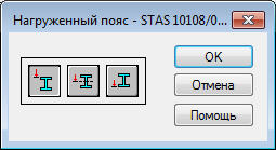 Пользователь может выбрать одну из трех иконок соответствующих варианту нагрузки действующей на сечение балки на следующих уровнях: верхняя грань, центр сечения, нижняя грань.