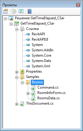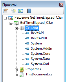 В данном примере обновленный проводник проекта IDE для GetTimeElapsed_CSharp содержит следующие компоненты: