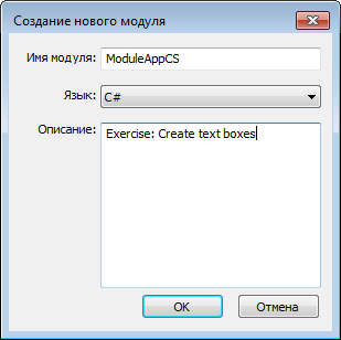 Открывается диалоговое окно "Создание нового модуля".