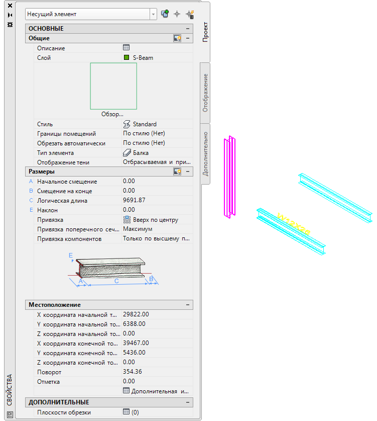 Колонны, балки и раскосы Revitможно экспортировать в приложение AutoCAD Architecture, в котором каждый элемент преобразуется в соответствующий тип несущих элементов AutoCAD Architecture.