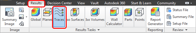 3. We can create traces on nearly any surface in the model, but the inlet is often the most convenient place. To create traces: