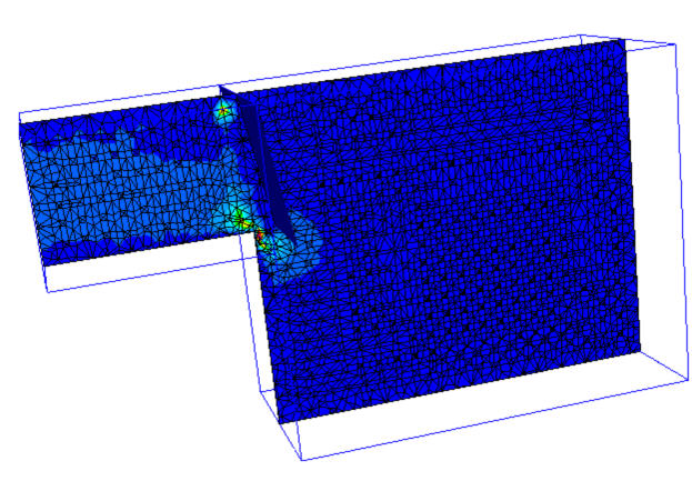 In reality, fluid would leak past such a valve at the onset of motion, and is shown in the model with a finer mesh: