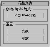 使用“调整变换”卷展栏中的按钮可以变换对象及其轴,而不会影响其子对象。调整对象的变换不会影响链接到该对象的任何子对象。