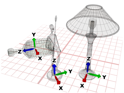 万向坐标系与 Euler XYZ 旋转控制器一同使用。它与局部坐标系类似,但其三个旋转轴相互之间不一定垂直。