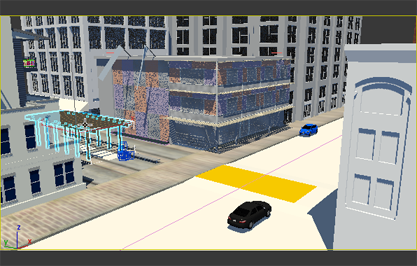 将鼠标移动到 Nitrous 视口中的对象上,黄色轮廓显示可以通过单击进行选择的对象。选择对象后,蓝色轮廓会显示选择内容。