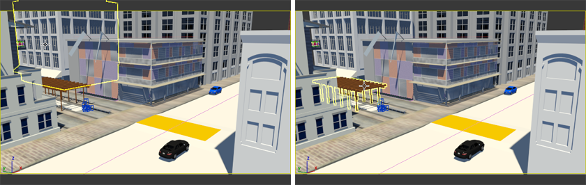 这将反转当前选择模式。例如,假定开始时在场景中有五个对象,已选定其中两个。选择“反转”后,这两个对象会取消选择,而其余对象被选定。