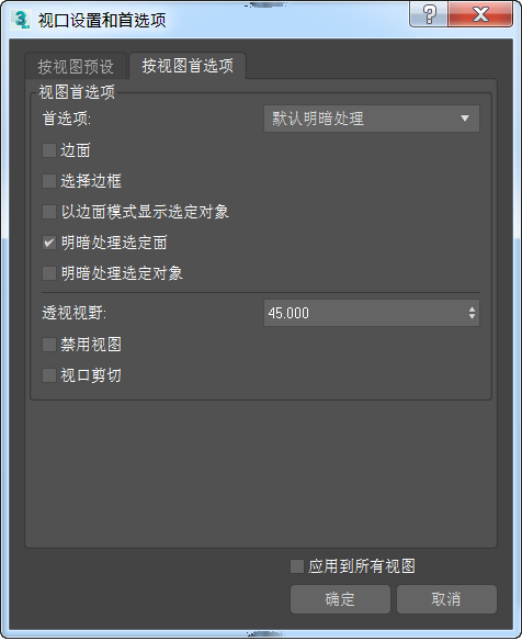 启用时,如果单击“确定”,会将当前选定的设置应用到所有可见视口。
