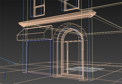 选定后,建筑墙将在边界框视口中显示为已进行明暗处理。