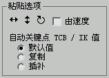 按照同样的规则,将姿势或姿态粘贴到启用了“自动关键点”的 Euler 轨迹上时,复制轨迹的 TCB 值也不会传输到 Euler 轨迹上。如果粘贴轨迹前创建了新的关键点,那么得到的切线值将设为默认值。