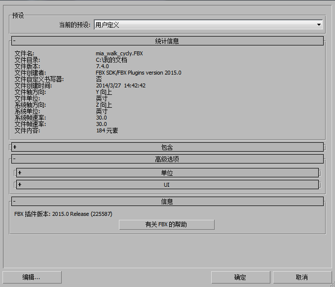 单击“帮助”按钮可以启动 3ds Max FBX plug-in用户文档。