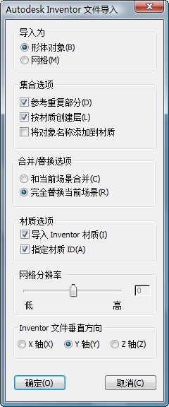 注: 只有从 Autodesk Inventor 10 或更高版本中导入模型时调整网格分辨率的选项才可用。
