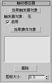 激活触动感应器。当此框处于禁用状态时,感应器不起作用,即使已选定对象也是如此。