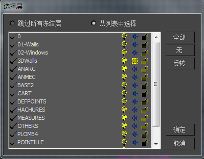 该对话框用于切换 DWG 文件层的包含/排除状态,并选择其他选项,如本主题中所述。