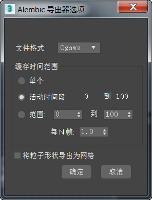 将显示“Alembic 导出器选项”对话框。