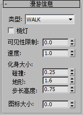 使用漫游信息辅助对象可以创建 VRML97 漫游信息节点。该信息将指导浏览器如何围绕 VRML97 世界进行导航。