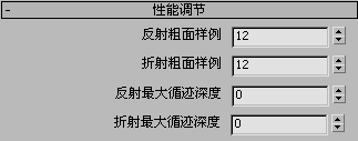 注: 有四种可能的参数,但对于每种材质,仅会在“性能调整”卷展栏上显示相关的设置。