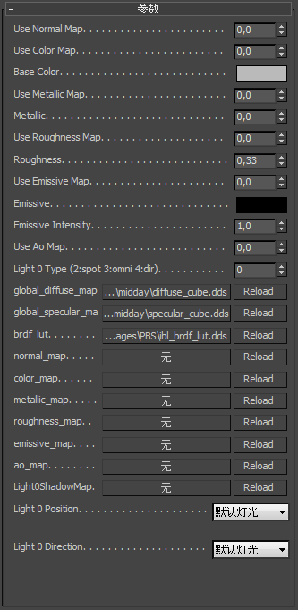 默认预设 Stingray 明暗器的“参数”卷展栏