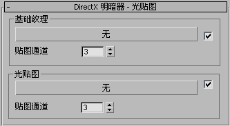 当您选择将“光贴图”作为 DirectX 视口明暗器时,将出现此卷展栏。“光贴图”明暗器可以显示基础纹理和照明贴图。通常这些贴图来源于渲染到纹理(纹理烘焙)。基础纹理通常是完成的贴图、混合贴图或漫反射贴图。您可以选择将这些贴图以及照明贴图作为烘焙纹理的元素进行渲染。