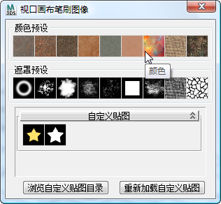 通过“视口画布笔刷图像”对话框,可以使用“笔刷图像”功能选择要用来绘制的图像和遮罩。