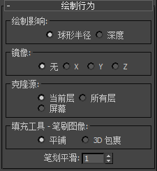 除带有绘制工具和笔刷设置的主界面外,“视口画布”对话框还包括许多带有其他设置、工具和选项的卷展栏。在本主题中对这些卷展栏进行了介绍。