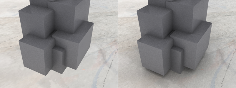 - 由于环境光阻挡导致的阴影的范围。当此项设置为 0(零)时,阴影会延伸到整个场景。