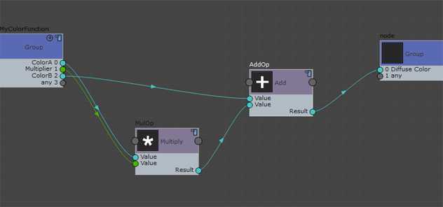 。在组视图中,选择组节点,然后在“特性”面板上,将“名称”字段中为 MyColorFunction。 在“特性”面板中,进行以下更改: