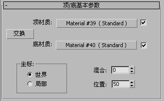 “顶/底”材质控件可用于选择两种材质,并可以在它们之间变换。