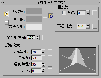 示例:“各向异性”明暗器的“基本参数”卷展栏。