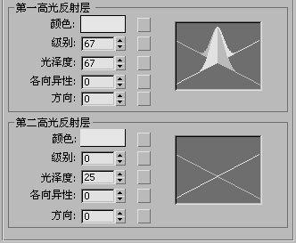“第一高光反射层”和“第二高光反射层”组具有相同的控件,这些控件的设置不同。