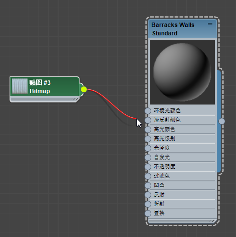 将线框放在“漫反射颜色”输入孔会将该贴图应用于材质的漫反射颜色组件。