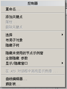 控制器节点的右键单击菜单与材质和贴图节点的右键单击菜单类似,只是它多了一些创建动画的选项。