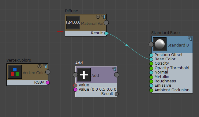 “添加”节点。单击其第二个“值”输入,然后将默认字符串更改为 0 0.5 0 0。