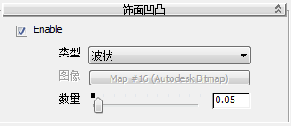 启用后,材质会显示低频率波浪或其他图案。默认设置为禁用状态。