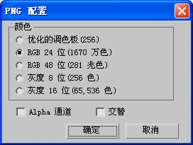 单击“渲染输出文件”对话框 中“渲染”或“设置”可显示“PNG 配置”对话框。