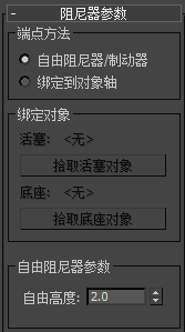 使用这些控件可以拾取弹簧绑定到的对象。“顶部”和“底部”是专用描述器。两个绑定对象的位置可以彼此相关。要完成绑定,请选择两个绑定对象,然后单击“绑定到对象轴”。