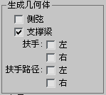 创建左扶手和右扶手。请参见“栏杆”卷展栏以修改扶手的高度、偏移、分段数和半径。