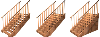在梯级下创建一个倾斜的切口梁,该梁支撑台阶或添加楼梯侧弦之间的支撑。也将该梁称为支撑梁片、马 或粗绳。请参见“支撑梁”卷展栏 以修改参数。