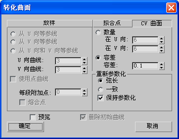 如果曲面不是一个 CV 曲面,此选项卡将其转化为 CV 曲面。