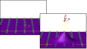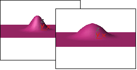 NURBS 模型的软选择控件与可编辑网格对象的软选择控件类似。软选择控件使点或 CV 的行为就好像围绕了“磁场”。在移动选中的点或 CV 时,将沿途平滑绘制场中未选中的点或 CV。